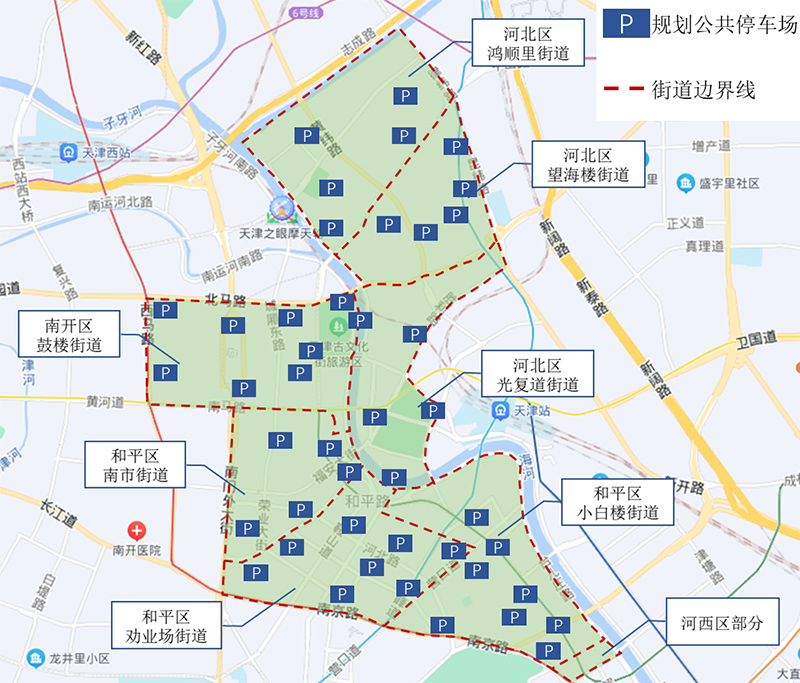 天津市中心城區(qū)核心區(qū)綠色交通改善工程及規(guī)劃停車場點(diǎn)位圖
