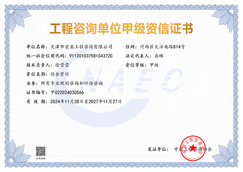 根據(jù)中國工程咨詢協(xié)會2024年第17號公告,天津咨詢所屬宏亞咨詢公司成功獲得建筑,農(nóng)業(yè)、林業(yè),水利水電,電子、信息工程(含通信、廣電、信息化),市政公用工程,生態(tài)建設(shè)和環(huán)境工程等6個(gè)專業(yè)甲級資信,并成功升級為甲級綜合資信。