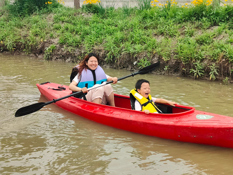 濕地皮劃艇項(xiàng)目將上午的活動(dòng)推向高潮。大家躍上皮劃艇,在粼粼波光中揮槳前行,或你追我趕,上演一場(chǎng)酣暢淋漓的水上競(jìng)速;或悠然自得,沉醉于濕地的如畫風(fēng)光。水面上歡笑聲與加油聲此起彼伏,奏響了活力四溢的夏日樂章。