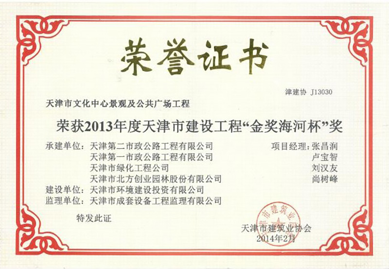 建設(shè)工程金獎(jiǎng)海河杯(2013年)