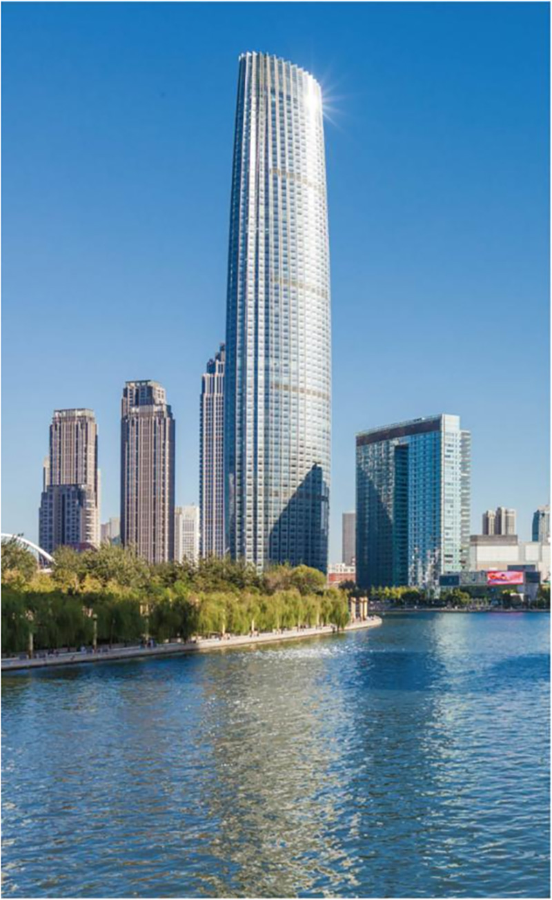 津塔是天津市新的地標式建筑,津塔高336.9米,并在中國已建成的摩天大樓中排名第7位,在世界已建成的摩天大樓中排名第25位,總面積約34.4萬平米,混合結(jié)構(gòu),最高75層,336.9米高,其中鋼結(jié)構(gòu)單體最大面積20萬平米。