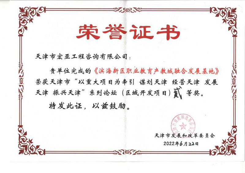 基地》項目榮獲天津市發(fā)展和改革委員會頒發(fā)的天津市“以重大項目為牽引 謀劃天津 經(jīng)營天津 發(fā)展天津 振興天津”系列論壇(區(qū)域開發(fā)項目)貳等獎。