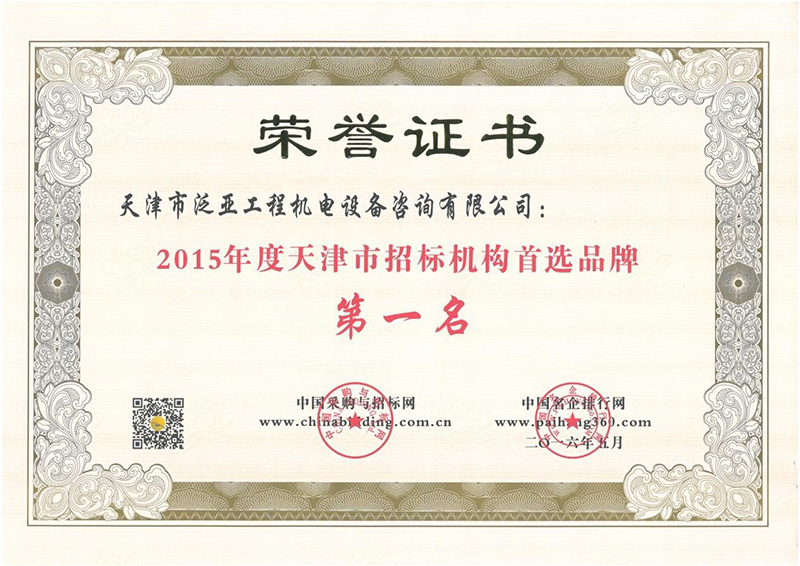 2015年度天津市招標(biāo)機構(gòu)首選品牌第一名