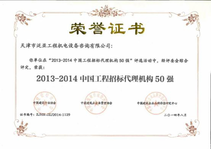2013-2014中國工程招標(biāo)代理機(jī)構(gòu)50強(qiáng)