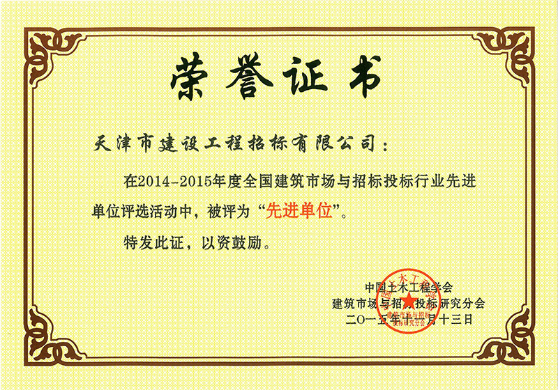 14-15年全國建筑市場與招標(biāo)投標(biāo)行業(yè)先進單位