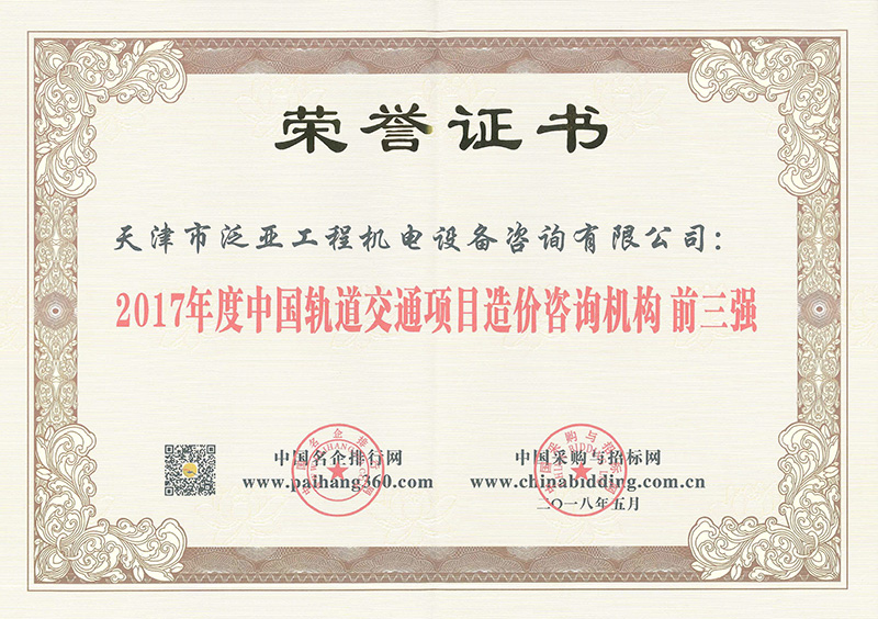 2017軌道交通造價前三強